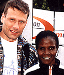 Chepchumba und unser Berichterstatter Andreas Weber nach dem Lauf.